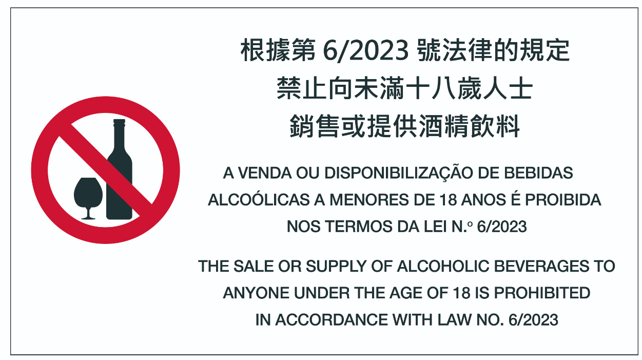 『根據香港法律,不得在業務過程中,向未成年人售賣或供應令人醺醉的酒類。』“ Under the law of Hong Kong, intoxicating liquor must not be sold or supplied to a minor in the course of business.”